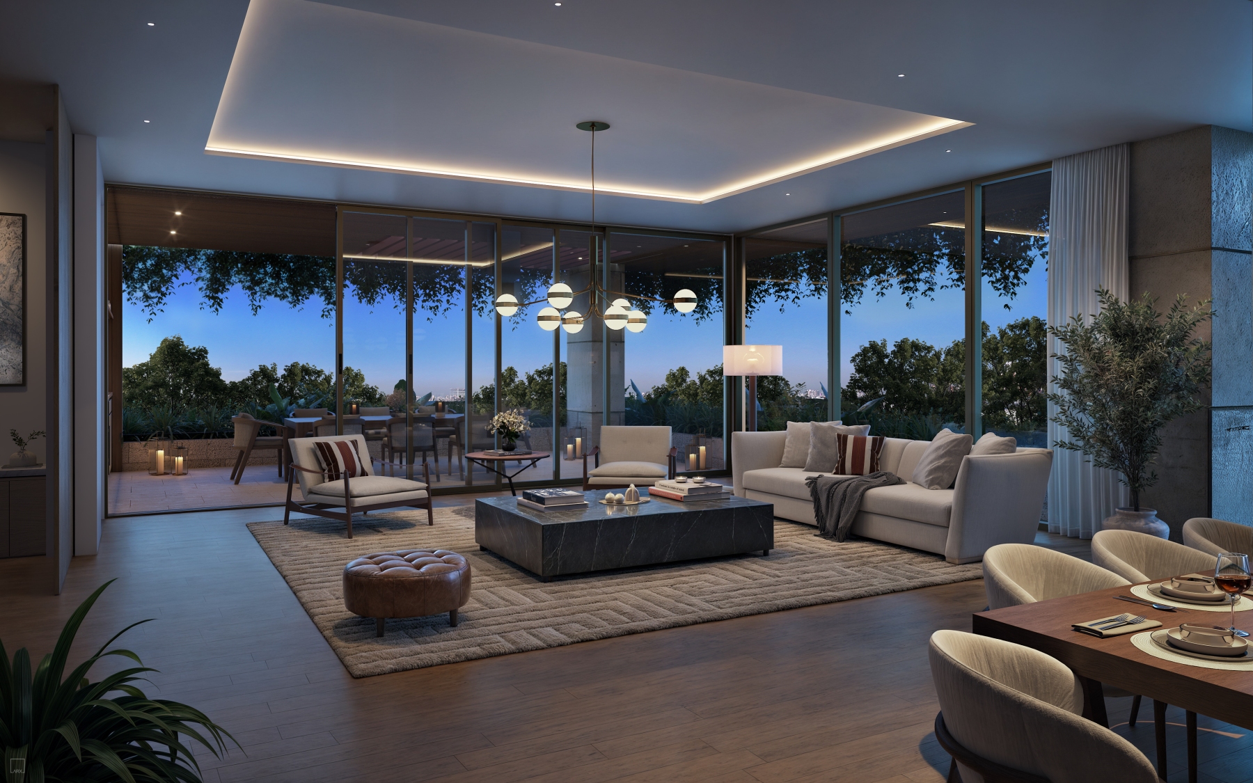 Exclusive Residences: Limited collection of large-format 2- to 5-bedroom homes with private elevators and deep wraparound terraces.